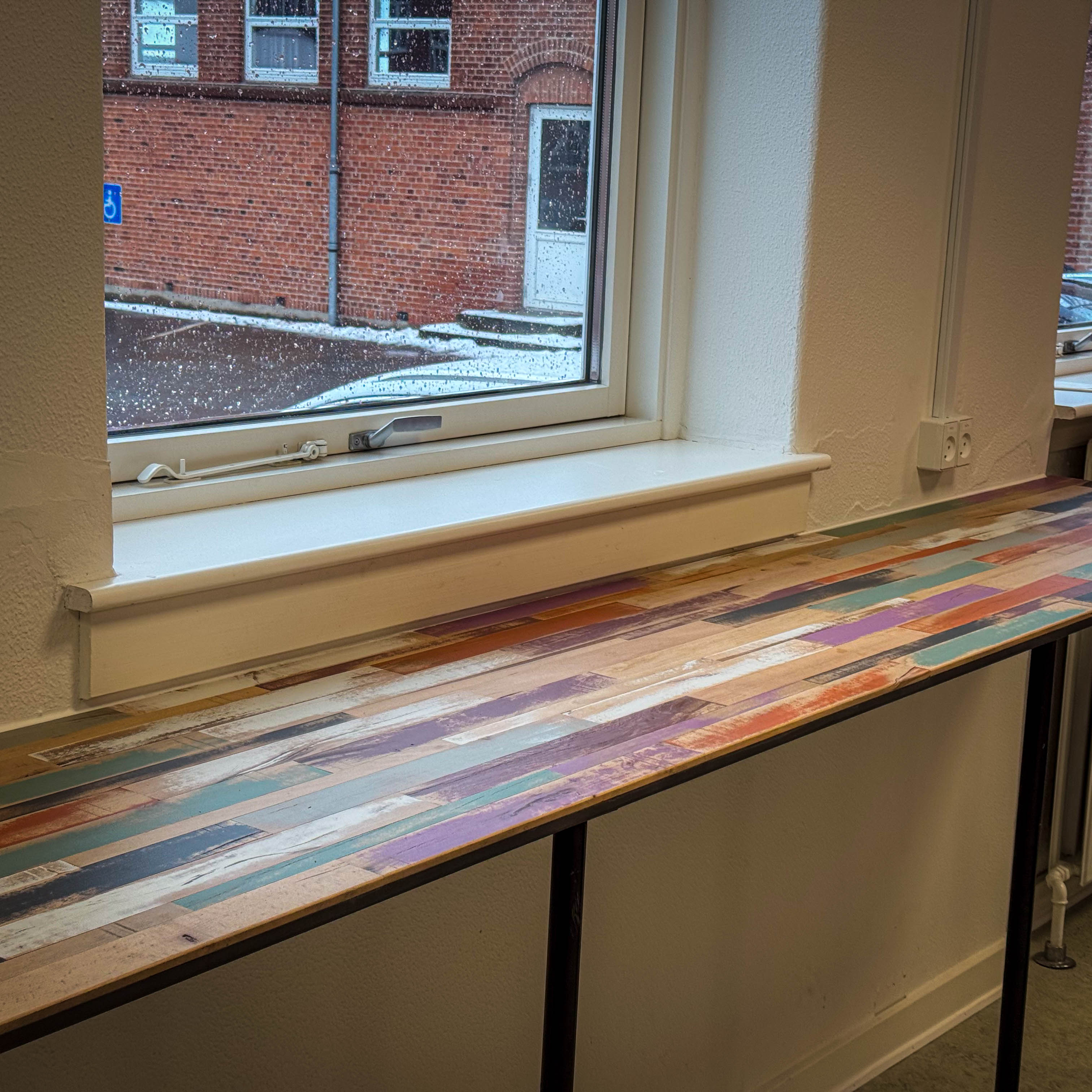 Multifarvet konsolbord til skole